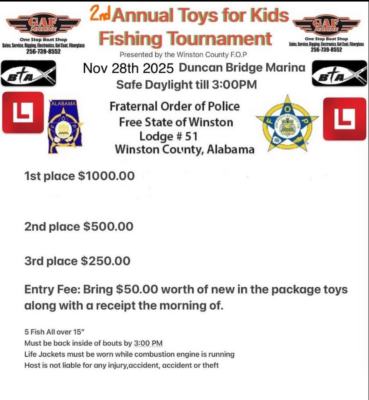 2nd Annual Toys for Kids Fishing Derby on Lewis Smith Lake